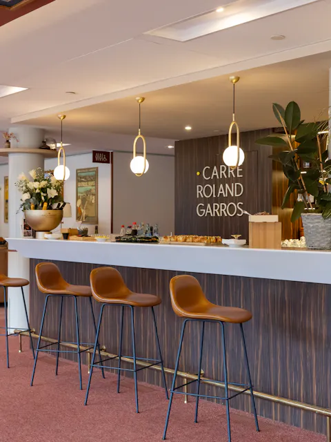 Part of the official function and presidential areas of Roland-Garros stadium, this elegant and prestigious space takes its colour cues from the legendary Parisian clay. Covering a floor area of 567m² and comprising a bar, the Carré Roland-Garros offers superb views of the Philippe-Chatrier court. Available in the evenings from 4pm and all day on Fridays and at weekends, it has everything you need to stage an unforgettable event.